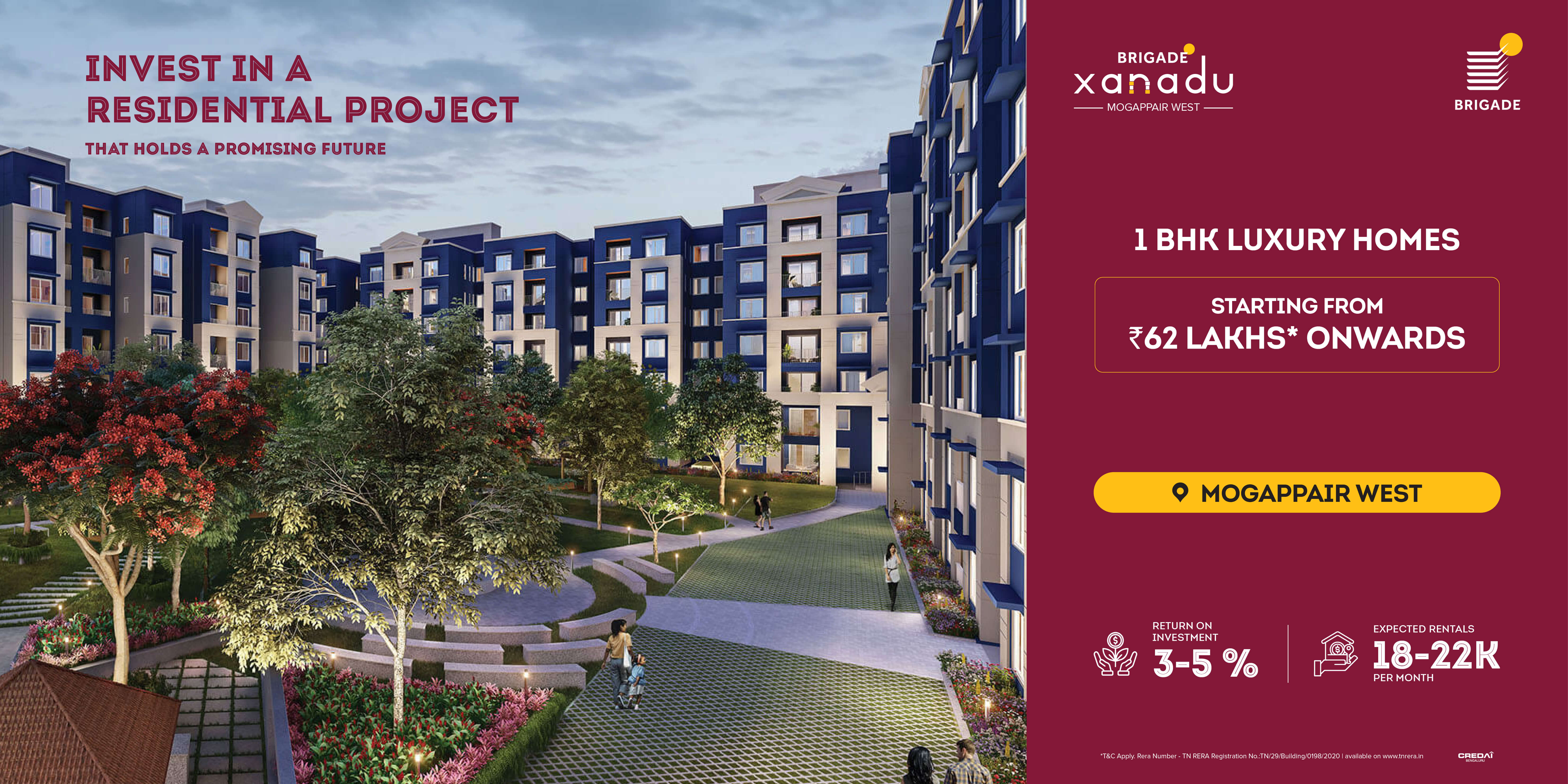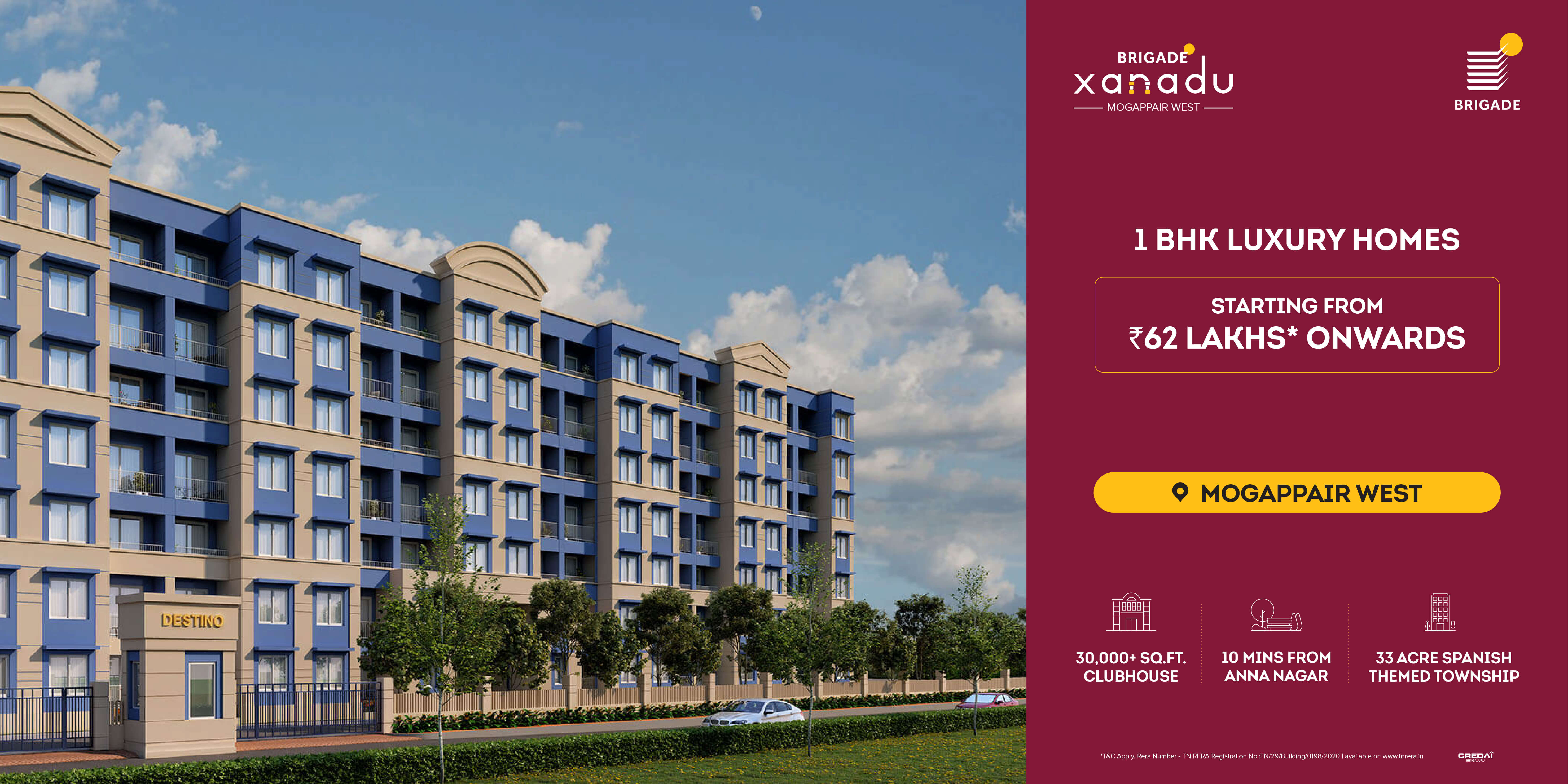 Presenting Brigade Xanadu, a sprawling haven offering respite from the chaos of city life, located well within city limits for the added benefit of great connectivity. The one-bedroom homes at Destino, each measuring 682 sq. ft., are spacious and comfortably large. The Spanish style homes are spread out in a 6-storey tower (ground plus 6 floors) surrounded on all sides by lush green open spaces, a sight only made prettier by the beautiful Spanish facades of neighboring buildings.